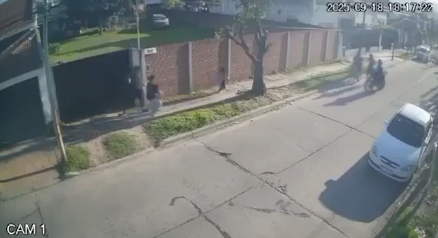 El joven advirtió que los asaltantes no tenían armas y decidió enfrentarlos, por lo que las cámaras de seguridad registraron cómo comenzó a golpearlos hasta que uno de ellos escapó. El otro ladrón recibió trompadas y patadas hasta caer de la moto, que terminó abandonada en el lugar.